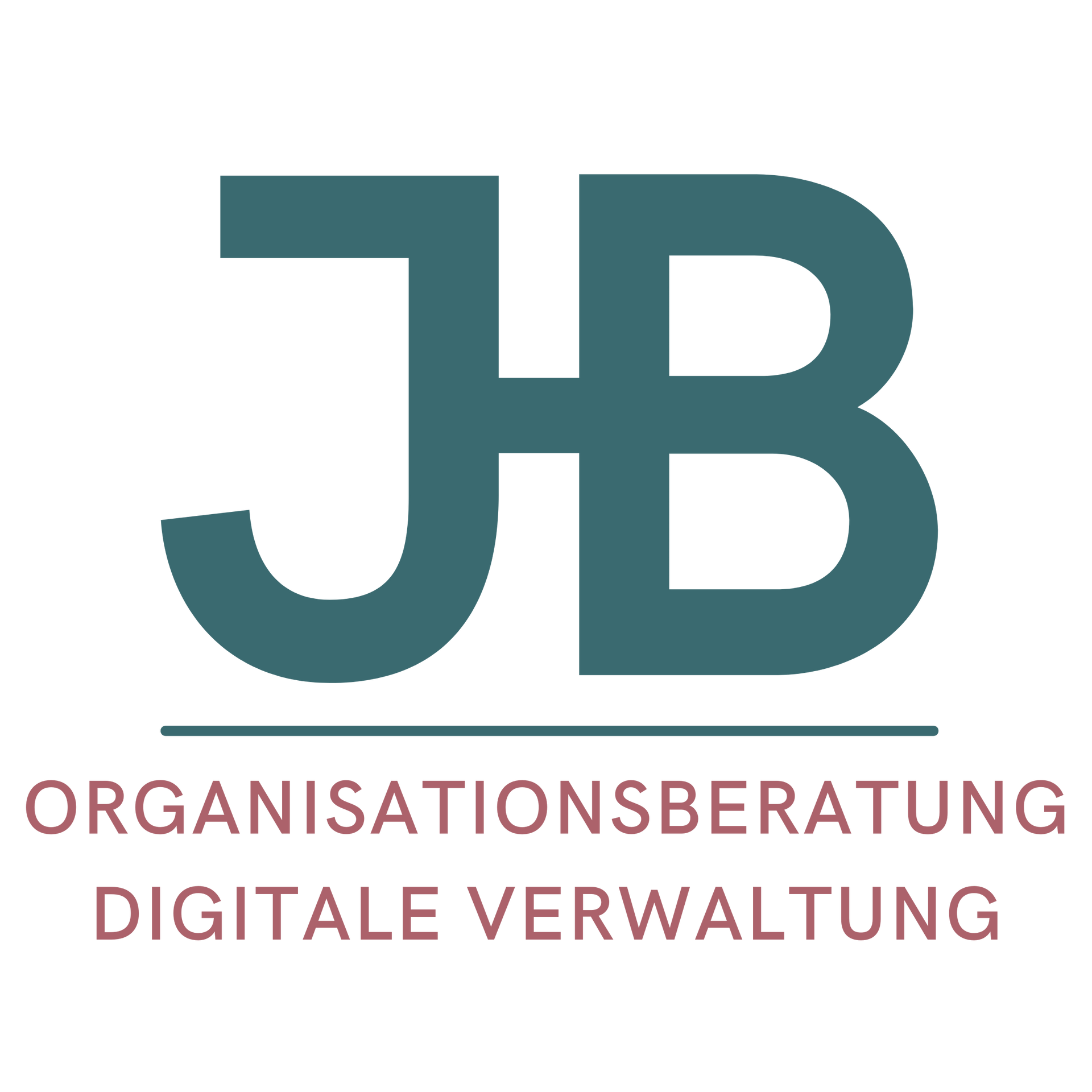 Das Logo von JB verbindet Klarheit mit Selbstbewusstsein. Die übergroßen Initialen stehen für Kompetenz, Struktur und Direktheit – wichtige Werte in der Verwaltungsberatung. Die Farbwahl aus gedecktem Petrolgrün und Altrosa schafft einen modernen Kontrast, der sowohl Seriosität als auch Menschlichkeit vermittelt. Die Linie trennt visuell die Markeninitialen von der Leistungsbeschreibung – ein bewusster Bruch, der Ordnung symbolisiert und gleichzeitig Aufmerksamkeit erzeugt.